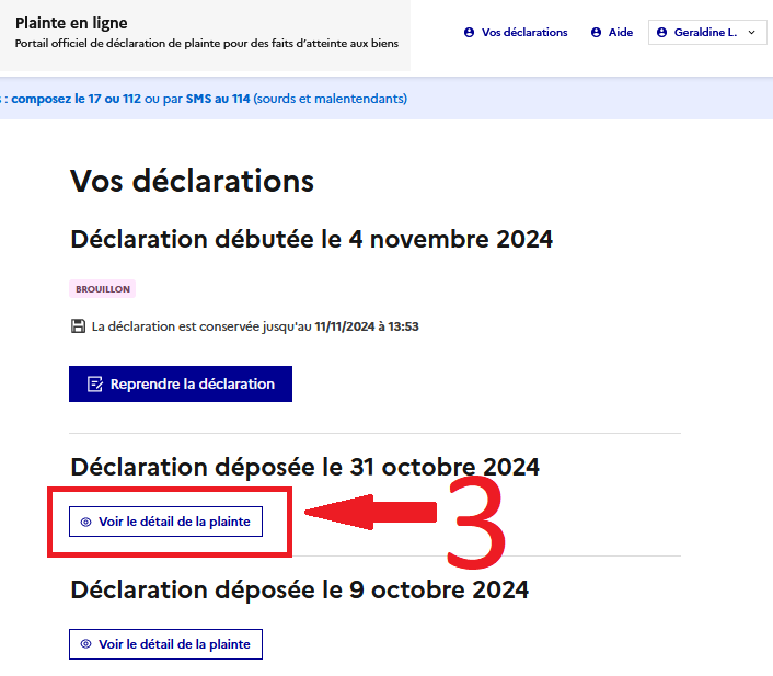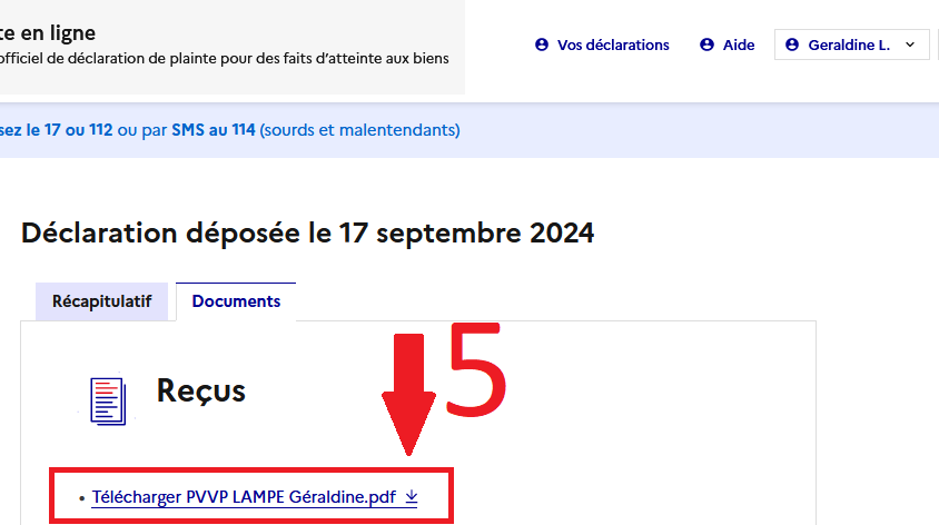Aujourd'hui, je reçois un mail m'indiquant que je peux télécharger mon procès-verbal de plainte et m'invite à aller sur mon compte.
